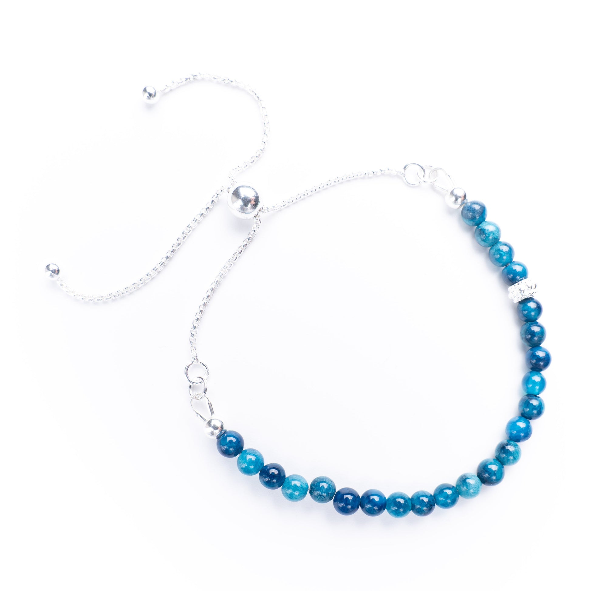 Crafted from natural, highest-quality Blue Agate gemstones and sterling silver, every bracelet is unique. The pavé charm adds sparkle, while the adjustable fit ensures a perfect match.