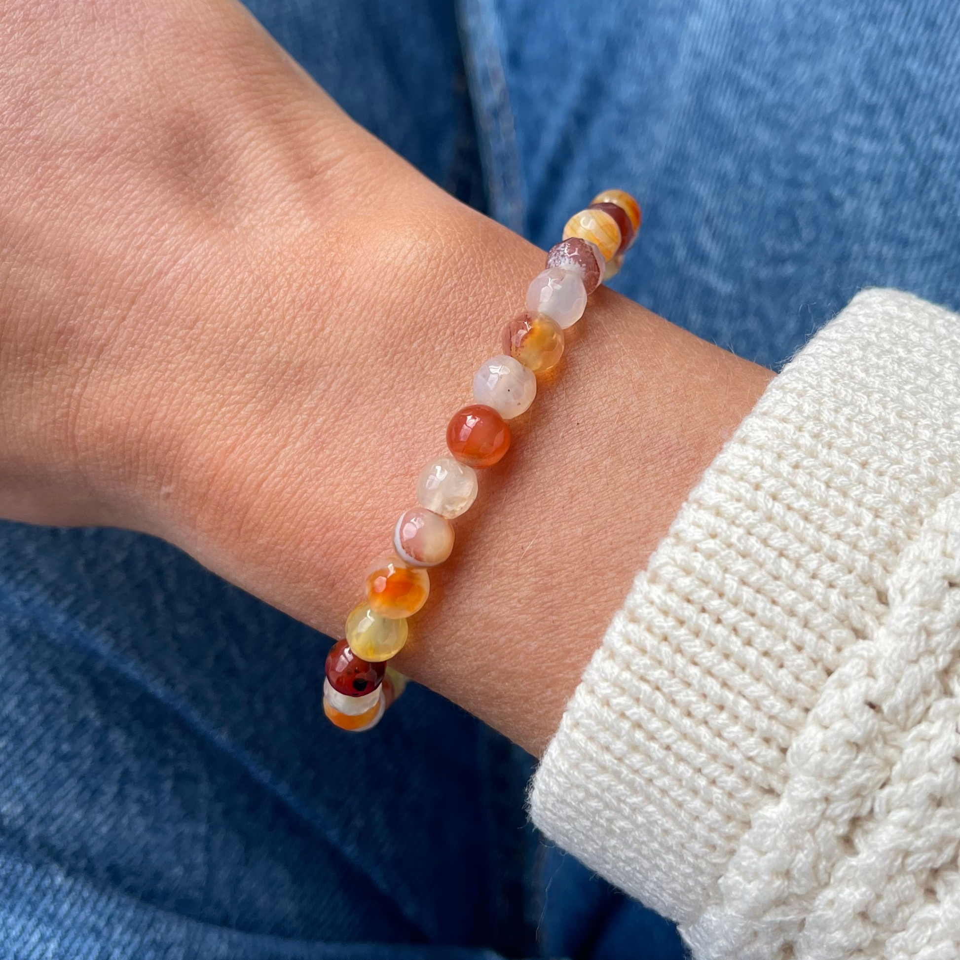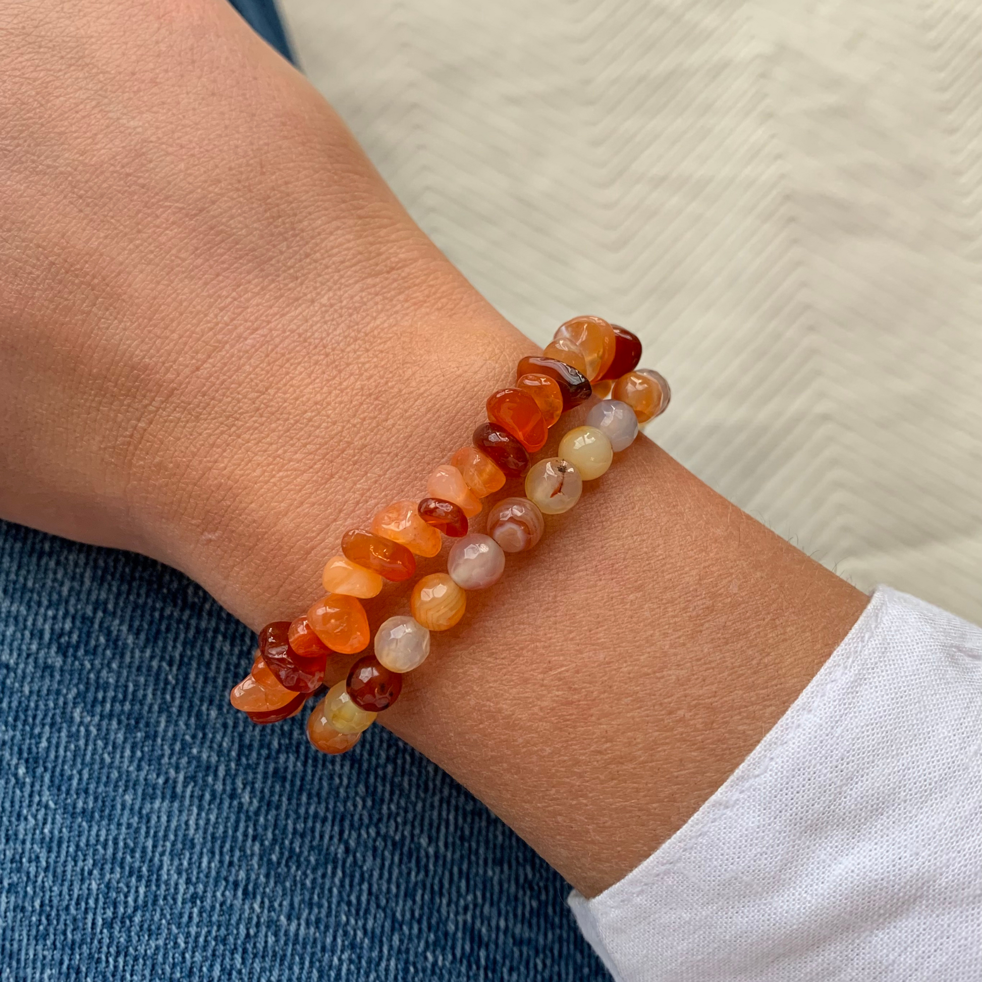 Crafted from natural, highest-quality Carnelian gemstones, each bracelet is unique — your own personal power piece. Finished with a stainless steel bead, waterproof and durable, it’s designed for everyday strength. Carnelian is known for inspiring motivation and fearless energy.