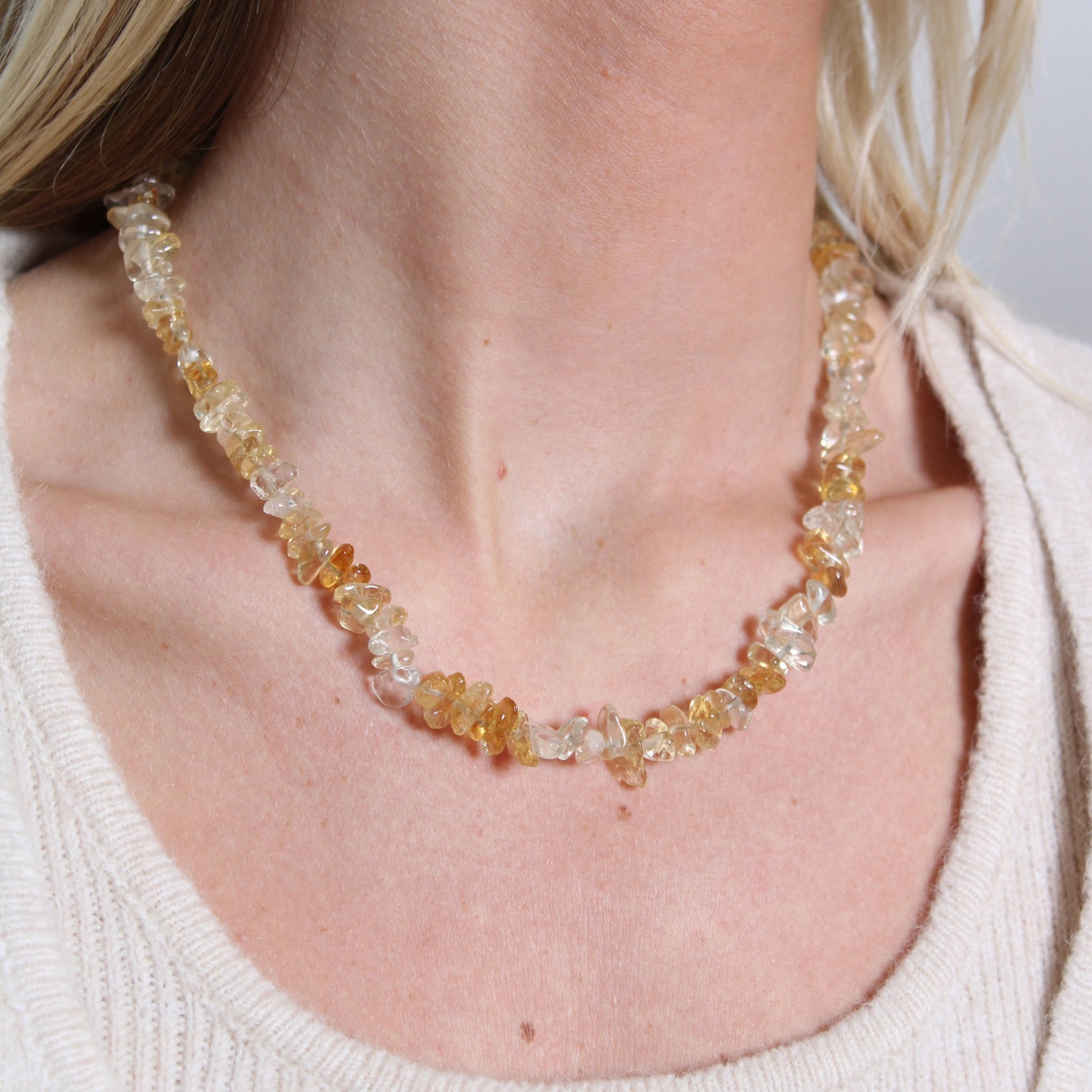 When positivity is needed, Citrine shines. This necklace pairs vibrant Citrine chipstones with a sterling silver clasp for radiant style.