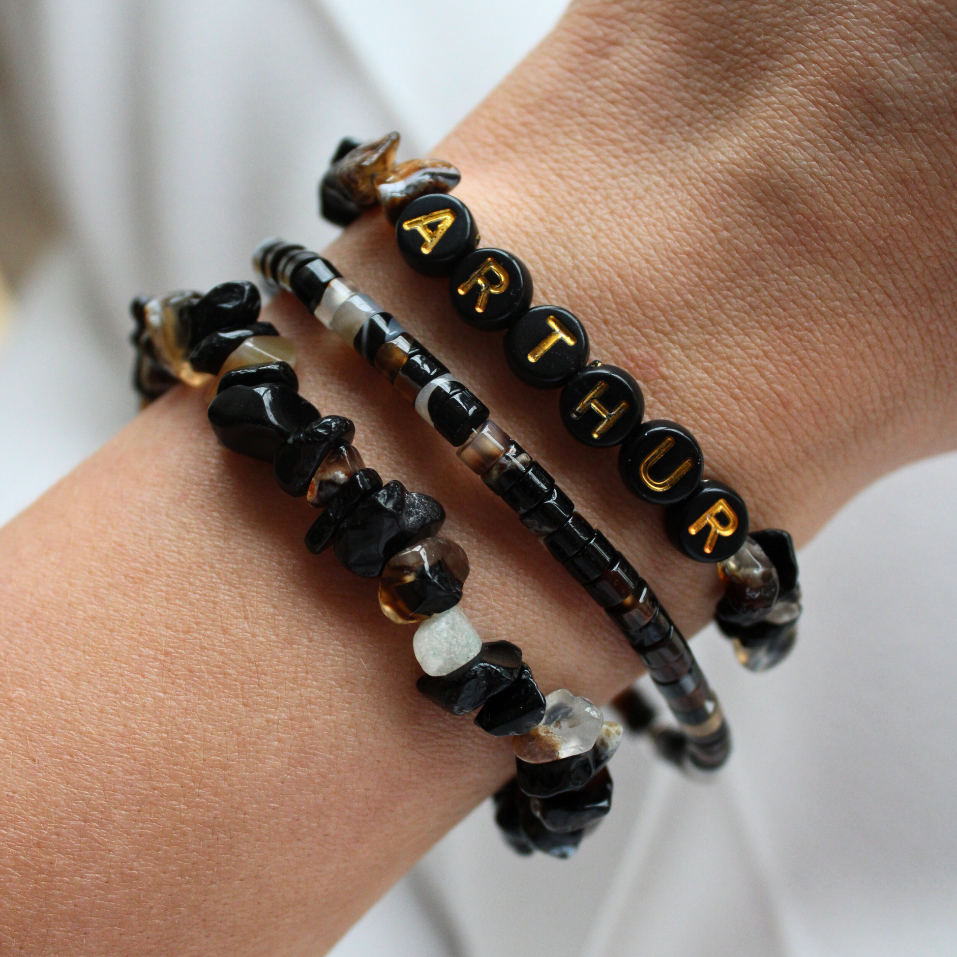 Our bracelets are made with durable elastic, giving them flexibility and a comfortable fit.