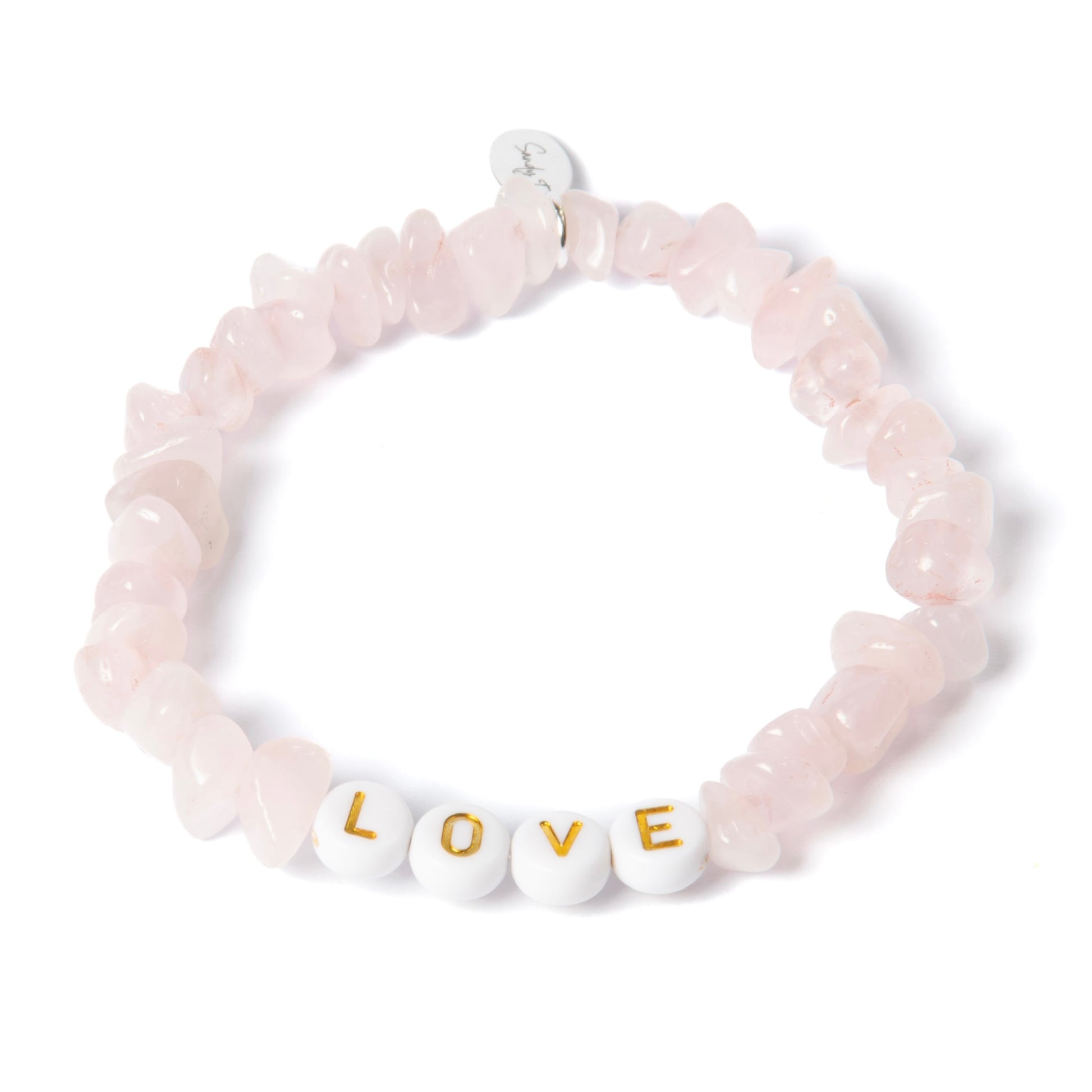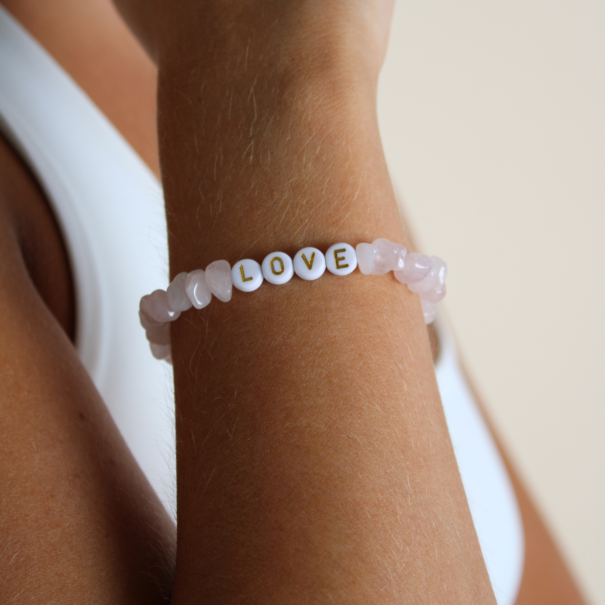 When your heart needs nurturing, Rose Quartz reminds you to love deeply. The enamel bead spells out LOVE, carrying your intention with every wear.