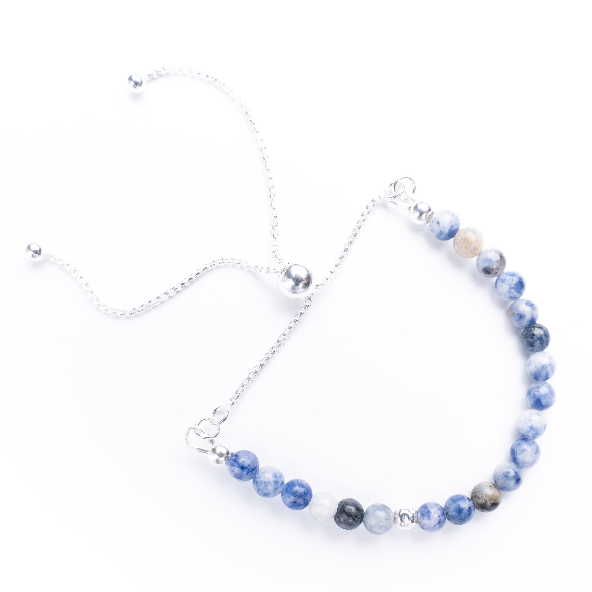 Made with natural, highest-quality Sodalite gemstones and sterling silver, each bracelet is unique. The adjustable fit makes it effortless to wear every day.
